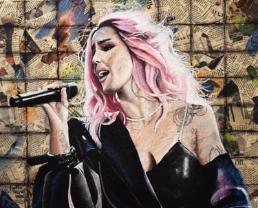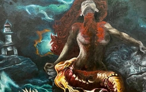 To develop the composition, the artist applied a thin layer of paint to create the appearance of an old, worn surface, which serves as the foundation for building a powerful character on top.