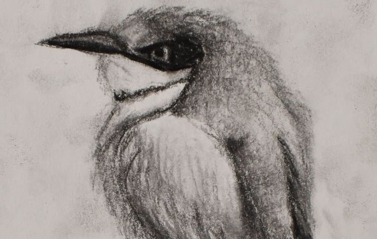 The artist utilized fuzzy blending to convey the bird's temperate nature. In contrast to Echoes of a Hollow Heart, this subject is fully drawn in, providing a sense of completion and presence.