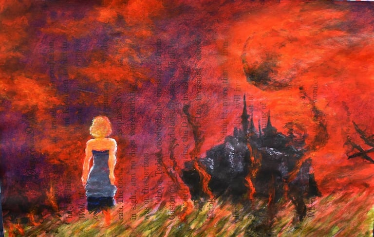 This piece serves as a thematic counterpoint to A Distant Hope, capturing the foreboding and conflict of The Legend of Zelda: Tears of the Kingdom. The intention was to shift the emotional register from tranquility to one of intense, overwhelming danger, contrasting with the peaceful environment explored in the previous work. This aggressive use of color deliberately explores the duality between environmental peace and imminent catastrophe.